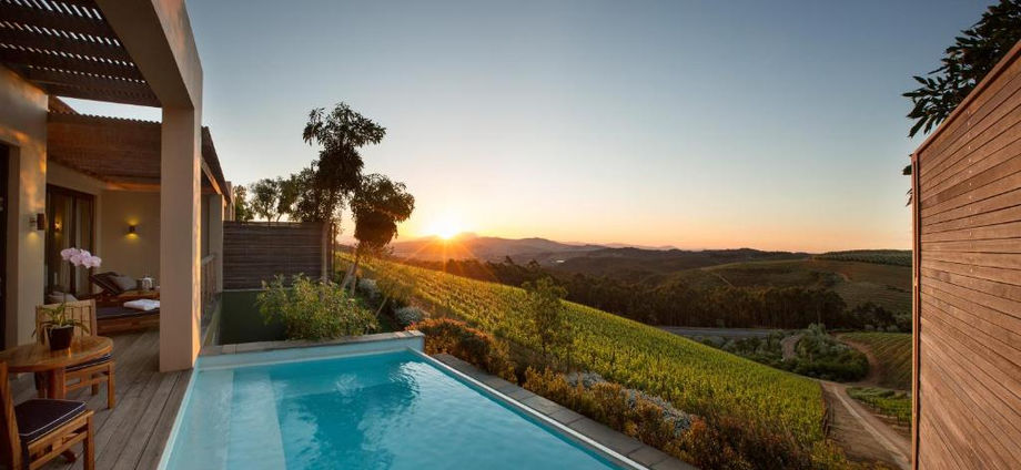 Perched atop Helshoogte Mountain Pass, Delaire Graff Lodges and Spa offers luxurious accommodation with private pools, a fitness centre, and an award-winning spa. Elegantly appointed rooms and suites feature Egyptian cotton linen, a Butler’s Kitchen, seating area, and private balcony. Hōseki Restaurant serves contemporary Japanese cuisine with à la carte and Omakase options. Guests can unwind with spa treatments, enjoy the heated infinity pool and hot tub, or relax in the estate’s tranquil gardens.